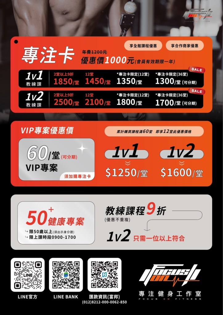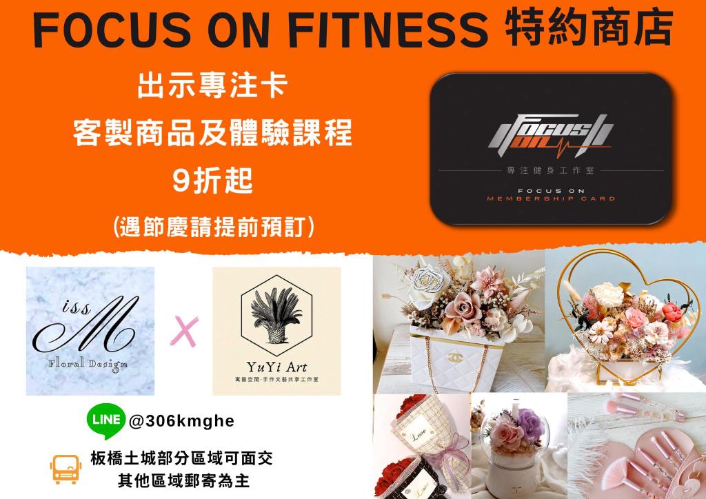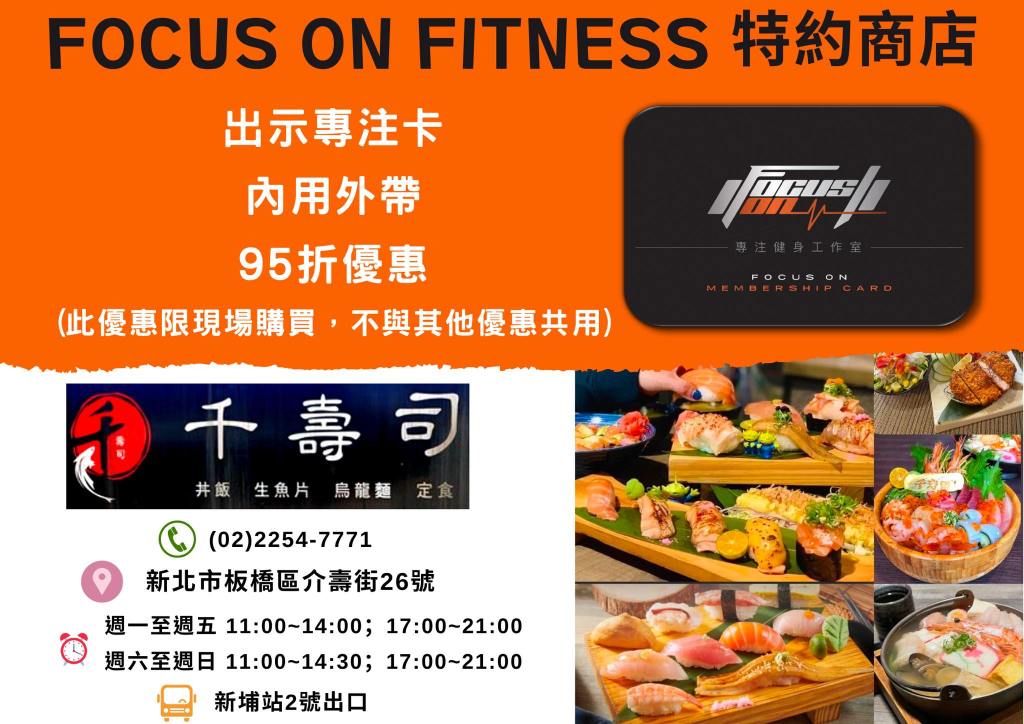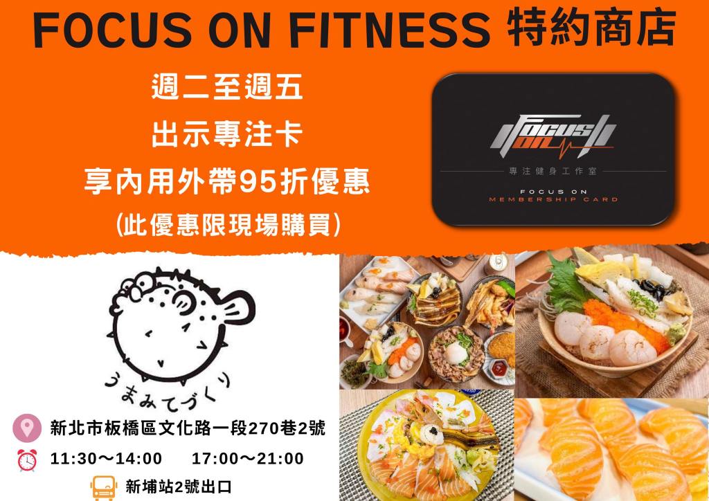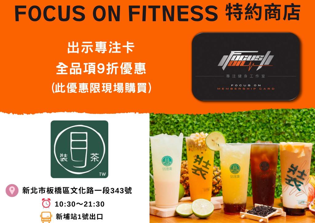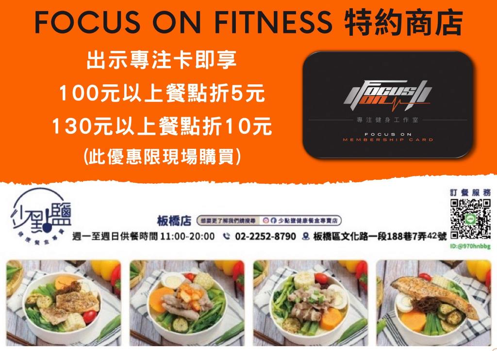 收費參考 合作商家優惠立即成為我們的專注卡會員,享有合作店家優惠! 好吃又好喝的 運動完就該來個好吃的犒賞一下自己 好玩的 FOCUS ON FITNESS 不僅照顧你的肚子,連你的快樂都是我們在乎的事